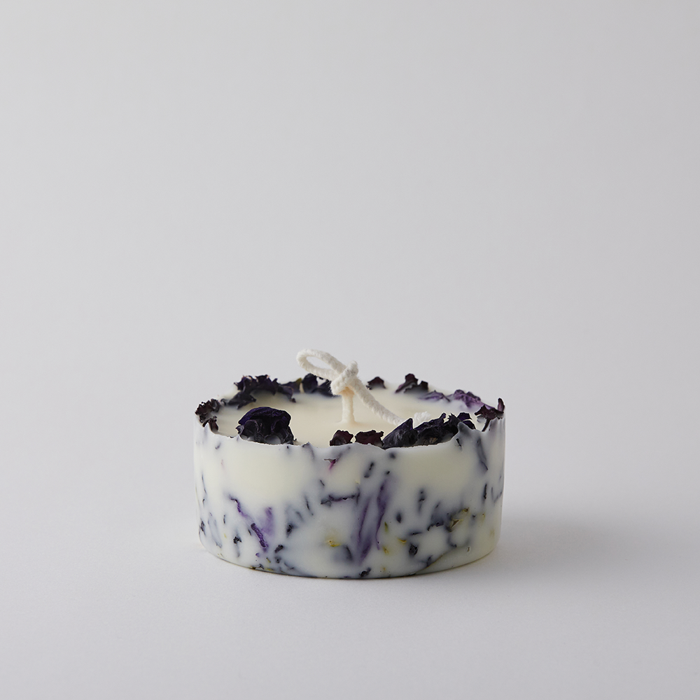 Each candle is carefully made by hand, blending dried flowers, leaves, and moss into abstract designs reminiscent. Enjoy the subtle glow of hand-placed dried flowers and our bespoke blend of natural fragrances.