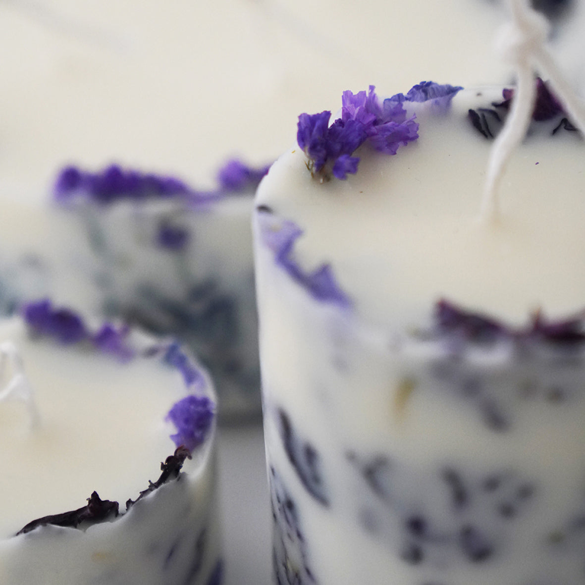 Each candle is carefully made by hand, blending dried flowers, leaves, and moss into abstract designs reminiscent. Enjoy the subtle glow of hand-placed dried flowers and our bespoke blend of natural fragrances.