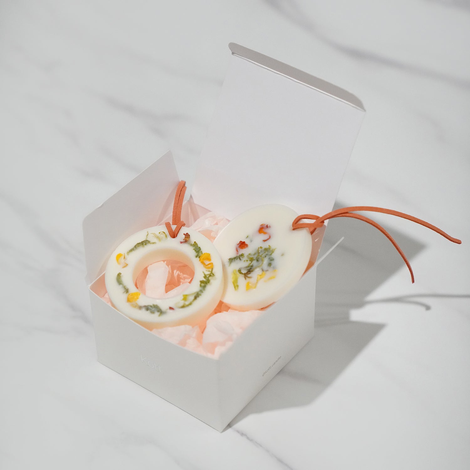 Our Perfulet is a solid room freshener made by infusing our essential oils with soy wax. It allows you to enjoy its subtle scent without fire. Add to cabinets, drawers or closets for a gentle fragrance.