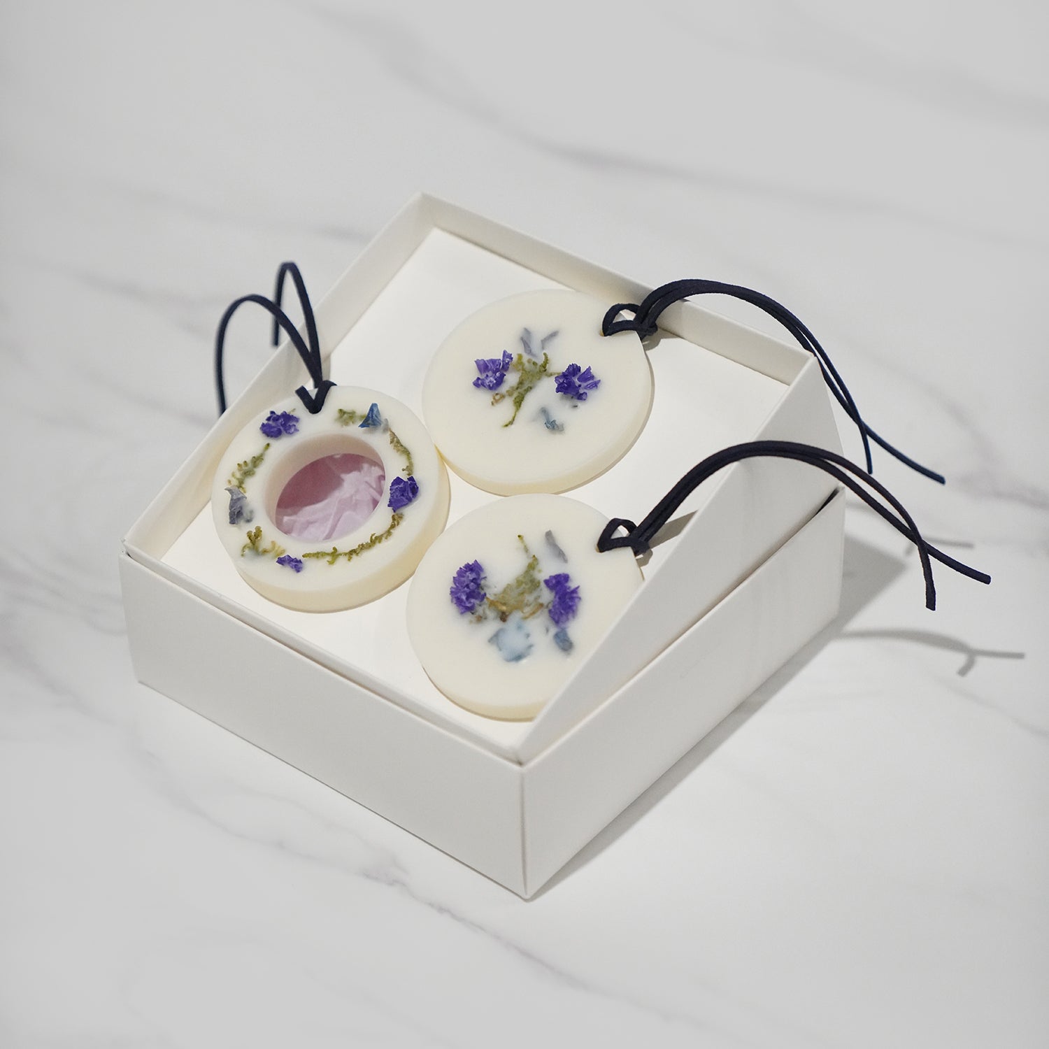 Our Perfulet is a solid room freshener made by infusing our essential oils with soy wax. It allows you to enjoy its subtle scent without fire. Add to cabinets, drawers or closets for a gentle fragrance.