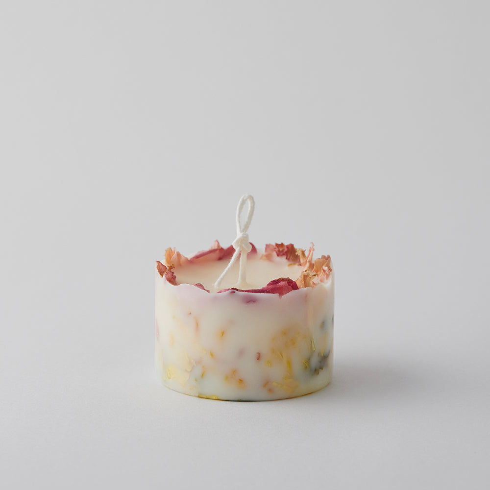 Each candle is carefully made by hand, blending dried flowers, leaves, and moss into abstract designs reminiscent. Enjoy the subtle glow of hand-placed dried flowers and our bespoke blend of natural fragrances.