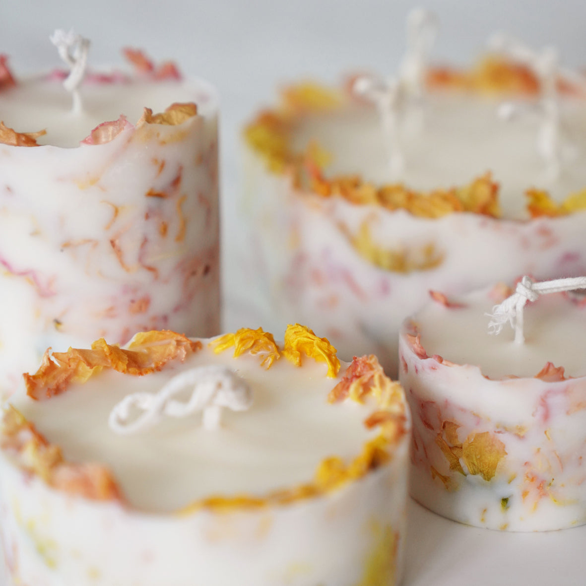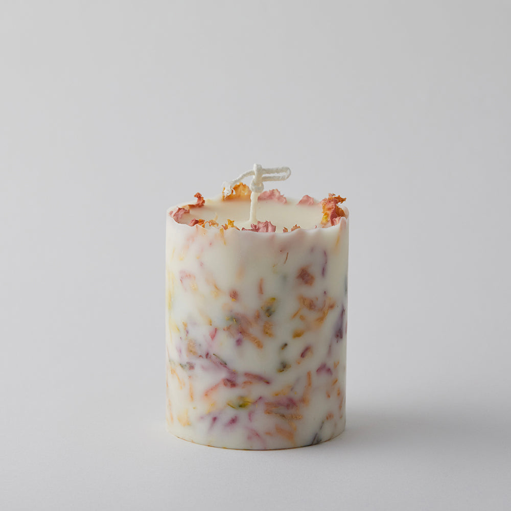 Each candle is carefully made by hand, blending dried flowers, leaves, and moss into abstract designs reminiscent. Enjoy the subtle glow of hand-placed dried flowers and our bespoke blend of natural fragrances.
